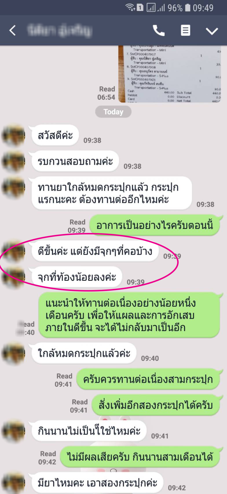 ท่านจะได้รับใบแนบคำแนะนำในการปฏิบัติตนช่วงรักษาตัว
