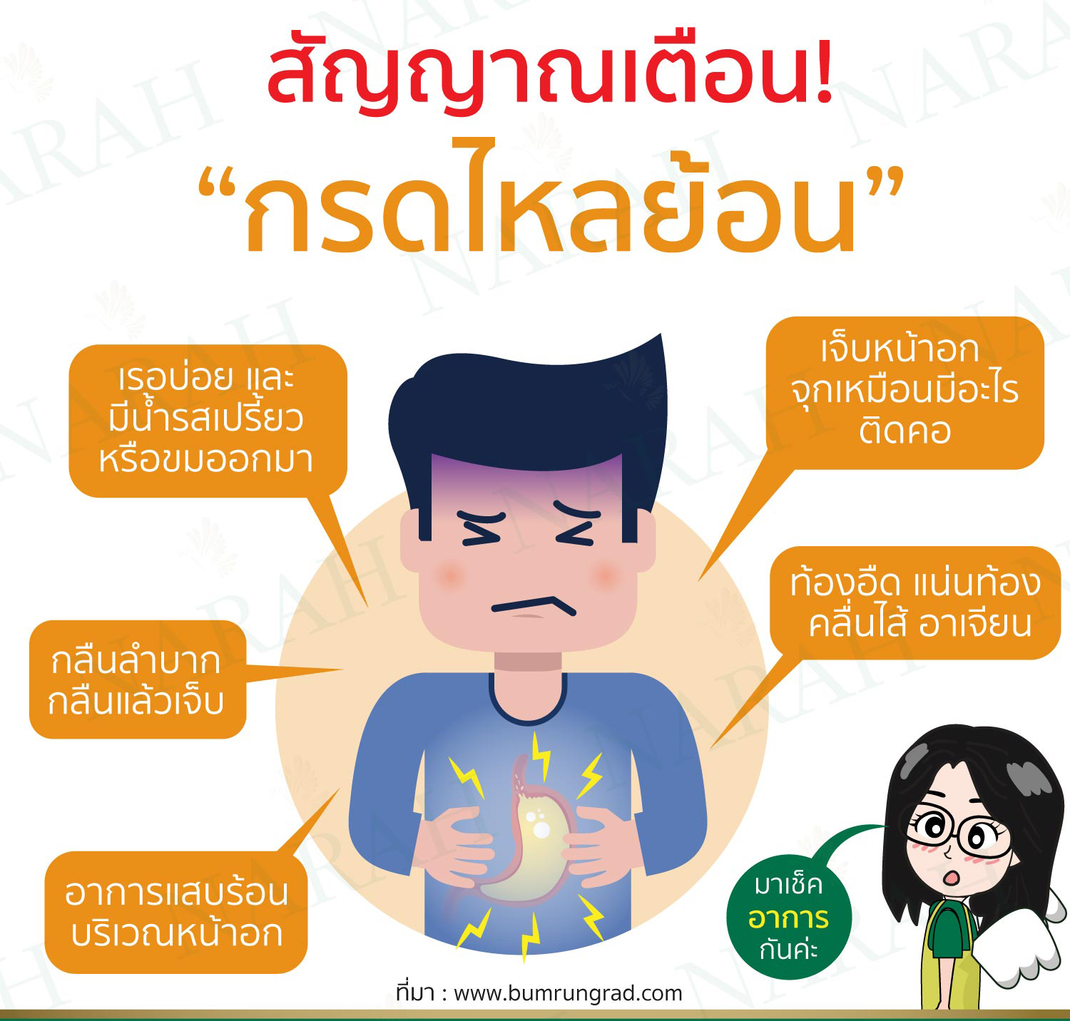 กรดไหลย้อนเป็นโรคที่เกิดขึ้นในระบบทางเดินอาหาร เกิดจากความผิดปกติบริเวณหูรูดกระเพาะอาหารซึ่งเป็นรอยต่อระหว่างหลอดอาหารและกระเพาะอาหาร แม้ว่าโดยปกติบริเวณดังกล่าวจะมีการคลายตัวที่ทำให้เรา “เรอ” เมื่อทานอาหารอิ่มหรือแน่นท้อง แต่เมื่อไหร่ที่เริ่มมีอาการ “แสบร้อนกลางหน้าอก” (Heart Burn) ตั้งแต่ด้านหลังขึ้นมาถึงช่วงอก บางคนรู้สึกได้ถึง “รสเปรี้ยวขึ้นในลำคอ” นั่นหมายความว่า น้ำย่อยของเรากำลังตีขึ้นมาถึงหลอดอาหารจากความเสื่อม หรือความหย่อน หรือการคลายตัวที่ผิดปกติของหูรูดกระเพาะอาหารนั่นเอง