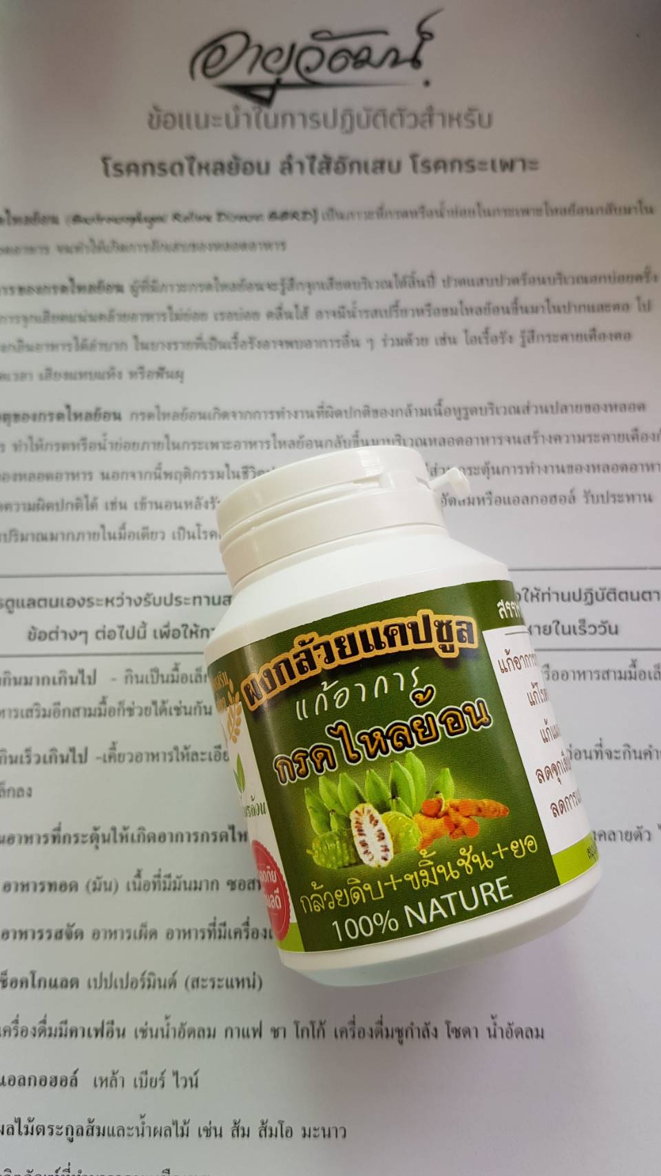 สมุนไพรจากวัตถุดิบจากธรรมชาติ ทำขึ้นเป็นสูตรพิเศษ สำหรับใช้แก้้้ไขอาการกรดไหลย้อน แผลในกระเพาะอาหาร ลำไส้อักเสบ แผลในลำไส้ เป็นสูตรธรรมชาติบำบัดที่ได้รับการกล่าวถึงอย่างแพร่หลายในขณะนี้ และเพื่อความสะดวกจึงทำในรูปแบบแคปซูลพร้อมรับประทาน ทำให้พกพาได้และรับประทานสะดวก ใช้ทานประกอบควบคู่กับการปรับเปลี่ยนวิธีการดำเนินชีวิต จึงจะได้ผลเต็มที่ ปรุงตามหลักเภสัชกรรมการแพทย์แผนไทย